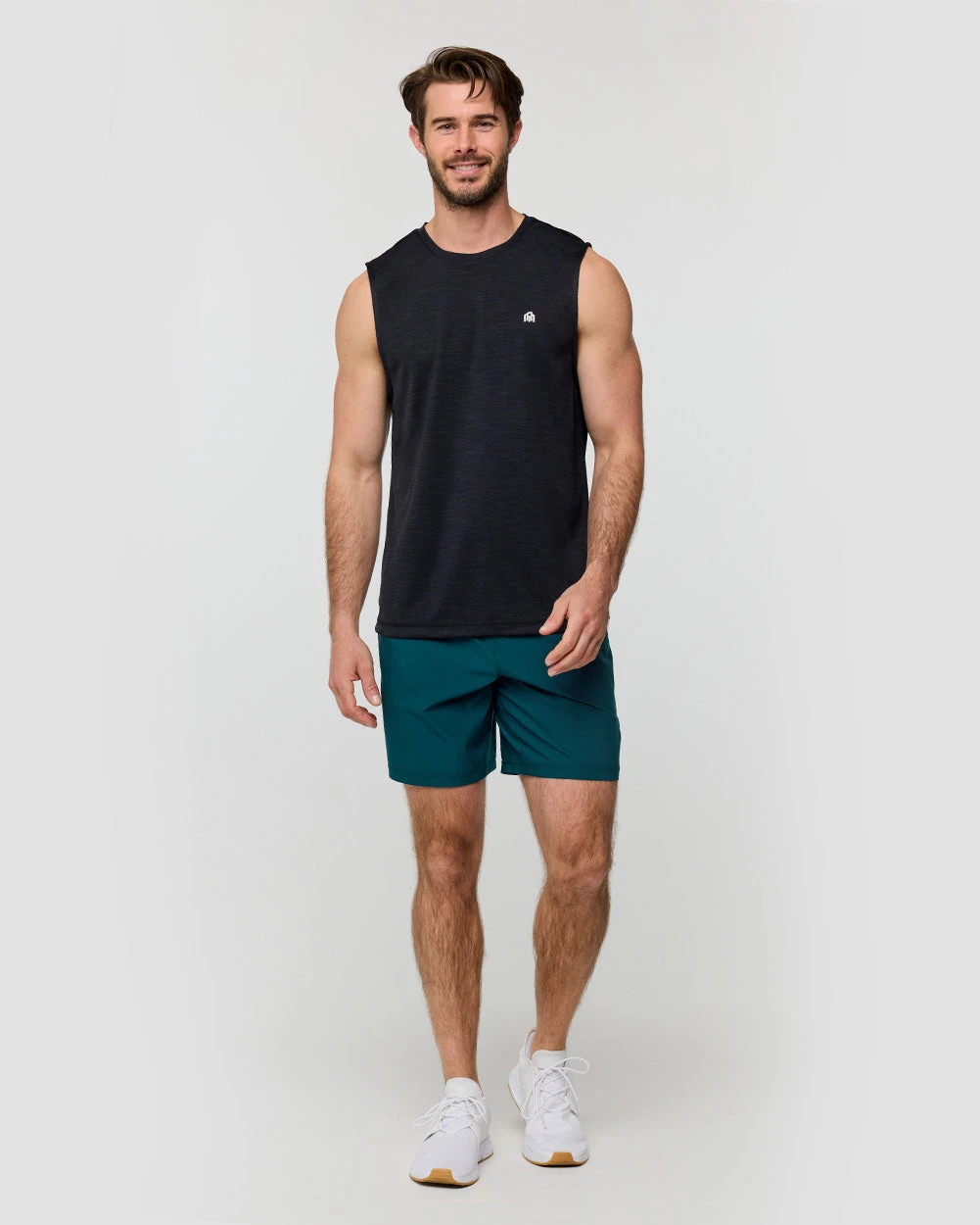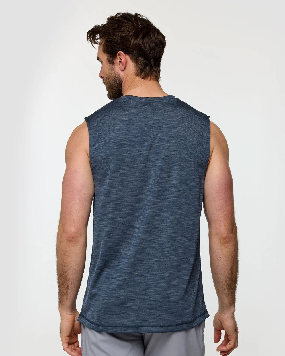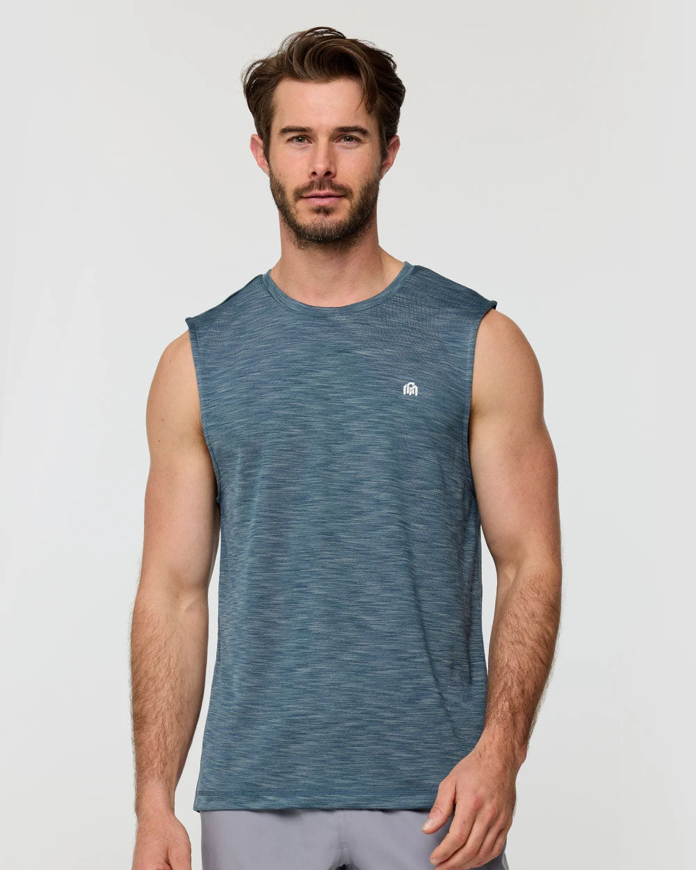Our Performance Muscle Tank features full shoulder coverage and a roomy drape to maximize mobility and range of motion.