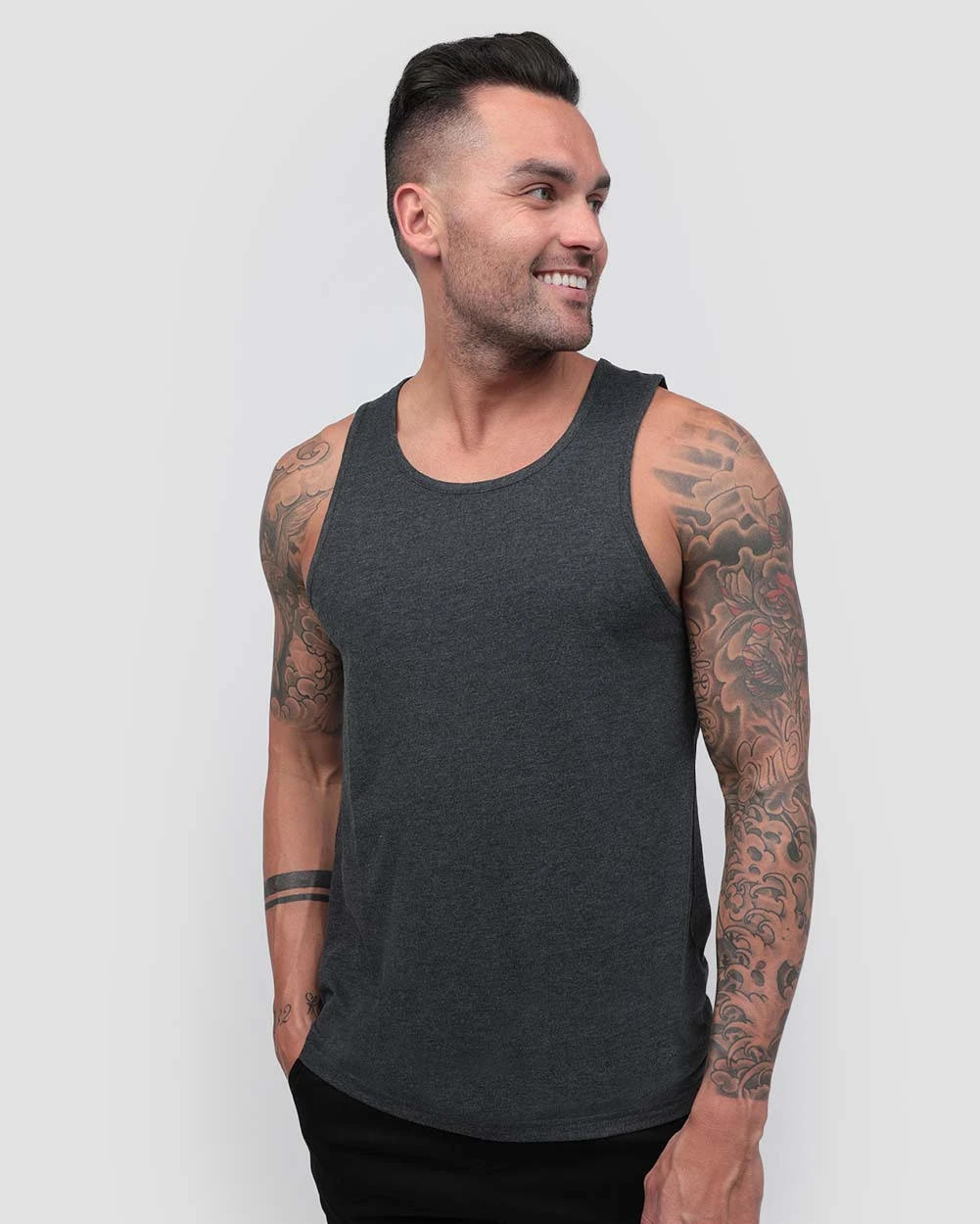 This tank is fitted yet cut in a way that is flattering on all body types. Slightly tapered with a standard length, the ultra-soft fabric highlights your good while concealing your not-so-good.